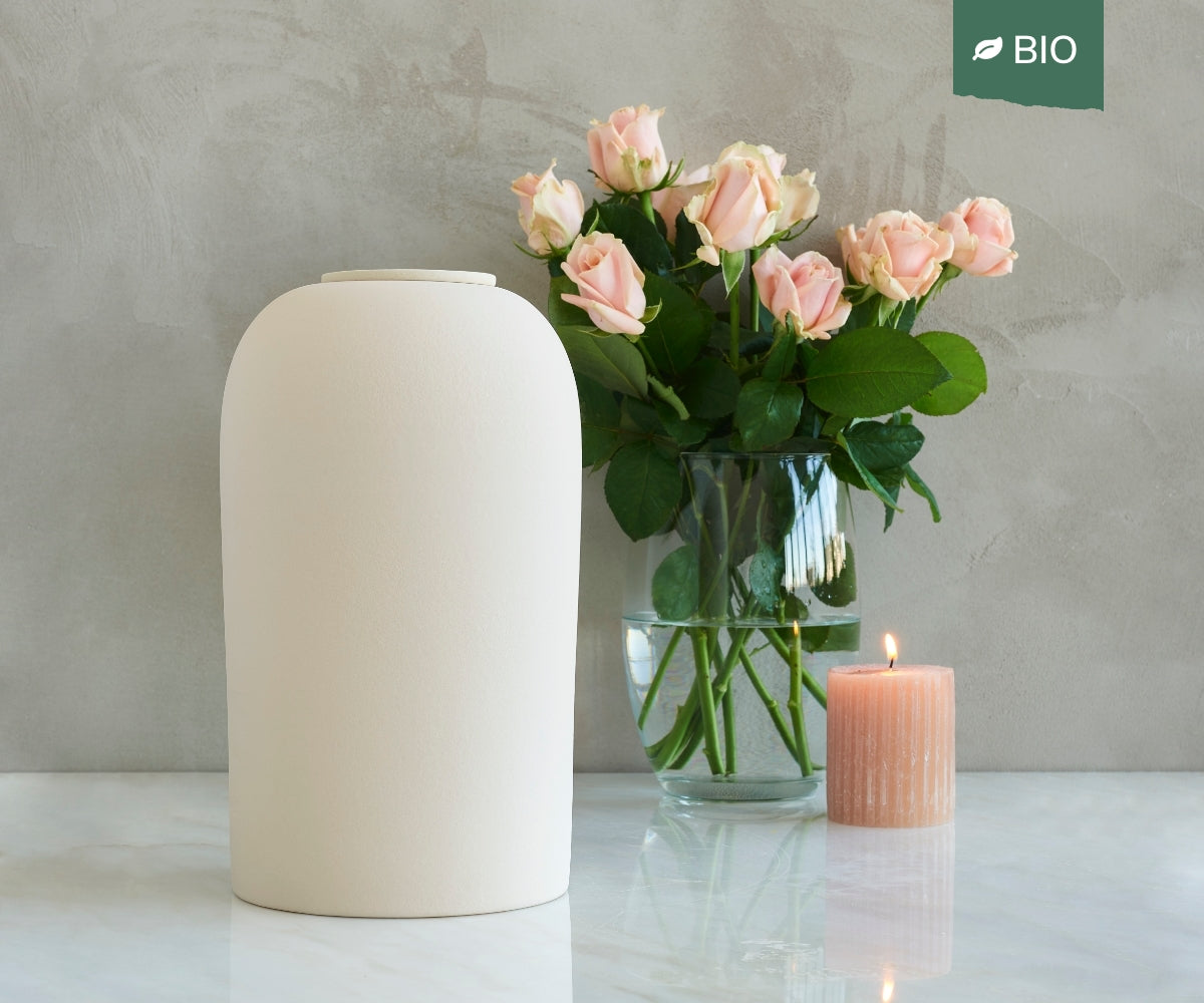 PELION - handmade eco urn in soft beige engobe